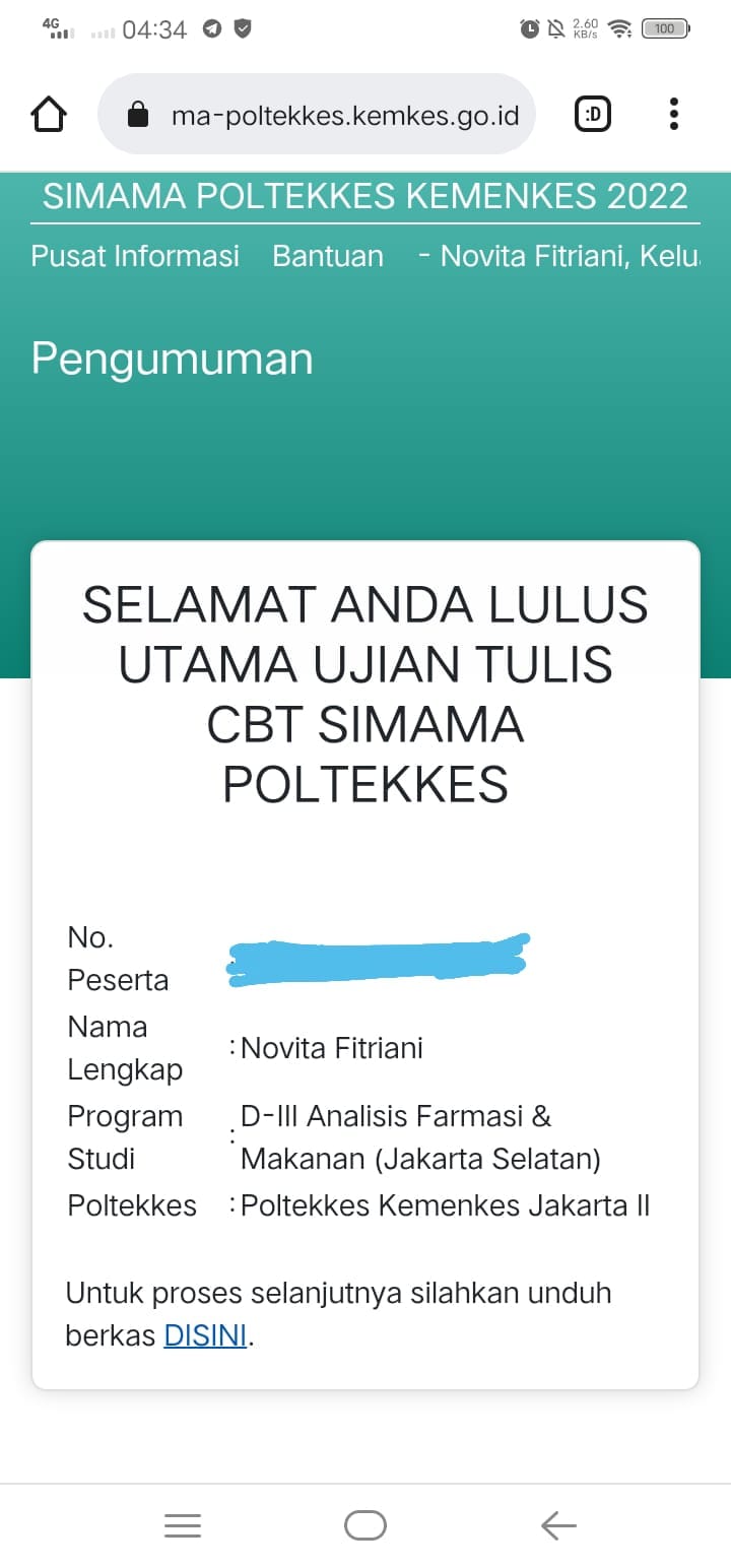 Alhamdulillah Segala Puji Bagi Allah SWT... Pengumuman ujian tulis CBT SIMAMA telah diumumkan dan siswi kami lulus & diterima diPerguruan Tinggi Negeri Poltekkes kemenkes JKT II dan Poltekkes kemenkes Bandung 🥰🥰🥰🎉