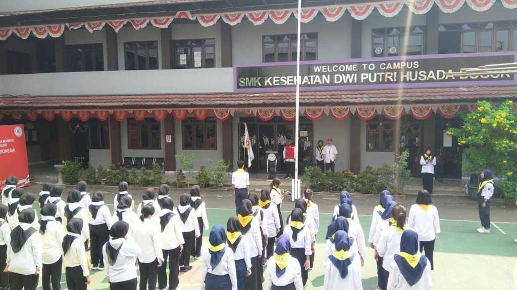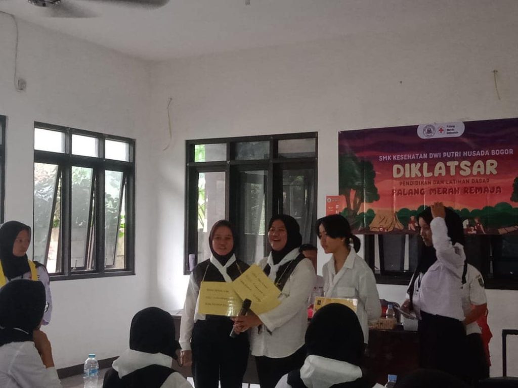 Kegiatan Diklatsar PMR bersama anggota baru kelas 10 Keperawatan & Farmasi, Pembukaan Diklatsar PMR SMK Dwi Putri Husada oleh Bapak Ade Jamalullail, S.HI, M.Pd dan Bapak Pelatih PMR bapak Andi.